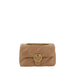 Calfskin Love Classic Shoulder Bag by Pinko, front closure with magnetic button, iconic gold-plated Love Birds logo embossed on the front, quilted and padded design, double internal compartment, sliding chain shoulder strap, iconic brand monogram embroidered tone-on-tone on the back.