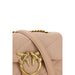 Pinko’s Love Mini Puff leather Shoulder Bag is a stylish and fashionable accessory. The front closure with magnetic button ensures practicality and security, while the iconic Love Birds logo, gold-plated and embossed on the front, adds a touch of luxury. The quilted and padded design gives the bag a rich and sophisticated texture. Inside, there is single interior compartment for excellent organization. The sliding chain strap offers versatility, allowing it to be worn on the shoulder or crossbody. On the back, the brand’s iconic tone-on-tone embroidered monogram adds a discreet and refined detail.