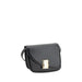 The Ferragamo leather Fiamma Shoulder Bag is a sophisticated accessory with a sleek, modern design. The front closure features a geometric flap embellished with a golden plaque, adding a touch of luxury to the look. The adjustable flat shoulder strap allows it to be worn comfortably on the shoulder or crossbody, adapting to different style needs. Made of patent leather, the bag sports a refined sheen. Inside, the single compartment offers enough space for your essentials, making it ideal for a chic and practical look.