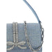Baguette Handbag by Self-Portarit, design embellished with all-over applied shiny rhinestones and jewels, single rigid leather top handle, matching and applied embossed bow on front, soft viscose lining, removable metal chain shoulder strap.