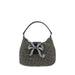Crescent Handbag by Self-Portrait, design with all-over applied glitter and rhinestones, top zipper closure, leather flap detail with magnetic button and iconic embossed brand bow, interior lining made of soft viscose.