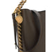 Frayme Bucket Bag by Stella McCartney, chain shoulder strap with extensions on the side panels of the bag, interior closure via hidden magnetic system, charm with iconic brand logo applied at the base of the shoulder strap, faux leather design.