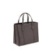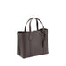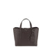 Leather Small Perry Handbag by Tory Burch, grained leather design, two flat top handles, adjustable and removable flat shoulder strap, three interior compartments, magnetic button closure at top, key ring charm attached to base of handle, iconic brand monogram stamped on front, metal feet at base of bag.