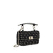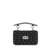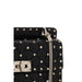 The Valentino Garavani Rockstud Spike small leather Handbag is a bold and elegant style icon, perfect for adding a touch of glamour to any look. Crafted from high-quality leather, this bag features a timeless design enhanced by all-over appliqué studs that give it a distinctive rock-chic look. The flat studded shoulder strap adds a touch of character, while the front swivel and flap closure provides security and convenience. Removable chain shoulder strap. Single compartment interior provides ample space for essentials while maintaining a clean, functional design.
