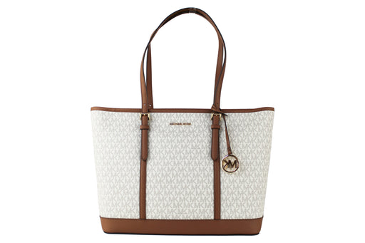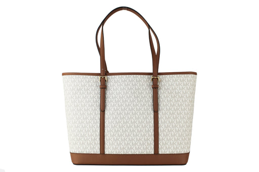 Michael Kors Jet Set Travel Large Vanilla Signature PVC TZ Shoulder Tote Handbag