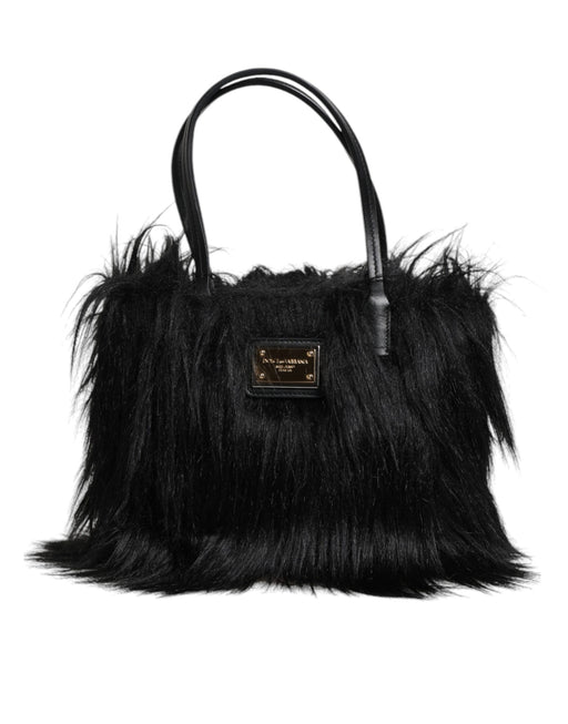 Dolce & Gabbana Black Fur Logo Plaque Double Handle Shoulder Bag