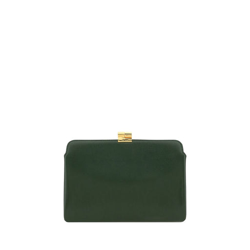Goatskin Clutch Bag by The Row, decorative buckle closure at top, grained leather design, single interior compartment.