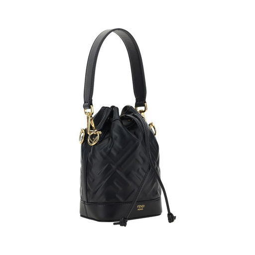 Calfskin Mon Tresor Bucket Bag by Fendi, flat leather handle removable via logo hooks, iconic all-over embossed brand FF logo, top closure via adju...