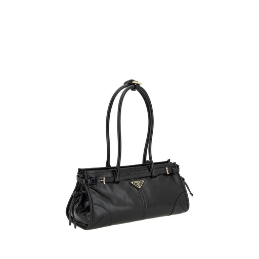 Leather Shoulder Bag by Prada, two tubular handles at the top, an adjustable and removable shoulder strap, top zipper closure, one interior compart...