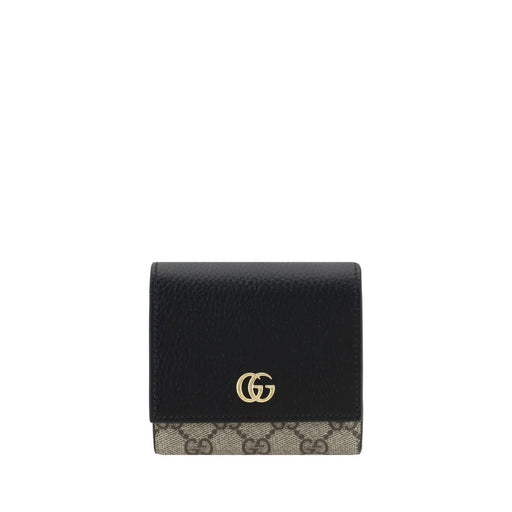 Leather Wallet by Gucci, trifold design, front closure by magnetic flap, all-over printed iconic GG Supreme brand logo, three-dimensional iconic br...