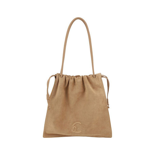 Leather Shoulder Bag by Brunello Cucinelli, top closure by drawstring, adjustable and removable flat handle at top, one compartment, iconic brand s...