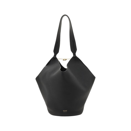 Leather Lotus Small Shoulder Bag by Khaite, top hook-and-eye closure, one flat handle, geometric grained leather design, iconic brand monogram pres...
