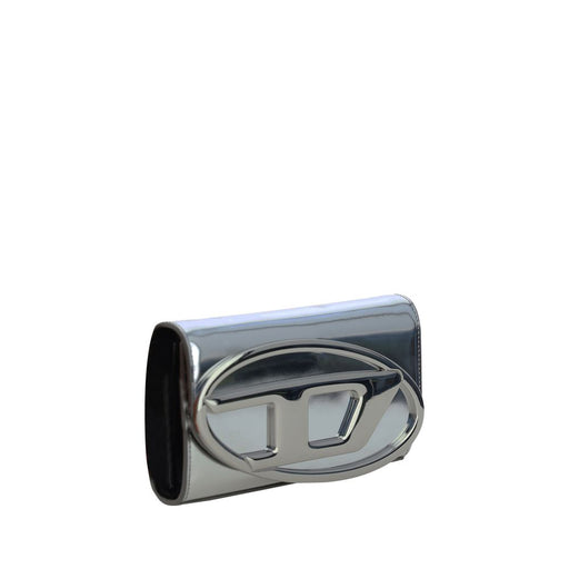 Calfskin 1DR Wallet by Diesel, mirrored leather design, flat shoulder strap, front closure via magnetic flap, iconic three-dimensional brand Oval-D...