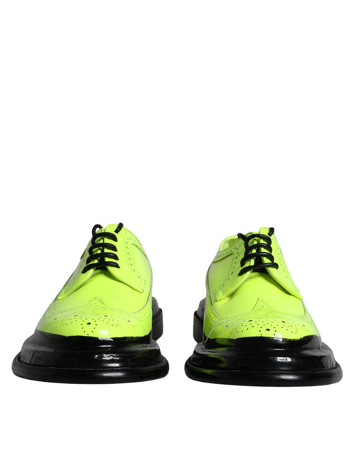 Dolce & Gabbana Neon Green Leather Lace Up Derby Dress Shoes