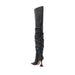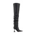 Leather Olivia High Boots by Amina Muaddi featuring a high model, an elongated toe, a zipper closure on the inside panel, and a geometric heel.