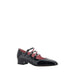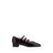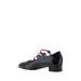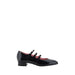 Calfskin Ariana Pumps by Carel Paris, patent leather design, almond toe on front, multiple and adjustable straps on back of foot, leather chunky heel., logo-embossed insole.