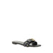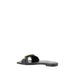 Chloé’s leather Mae Sandals are a perfect blend of elegance and handcrafted detail. The upper is embellished with knotted straps embossed with the Chloé logo and Gold eyelets, while the signature Paddington buckle adds a touch of luxury and sophistication. The slip-on style provides practicality and comfort, with a flat sole that offers stability while walking. Finally, the brand’s iconic monogram, press-stamped on the insole, completes the design with a distinctive and recognizable detail.