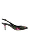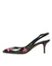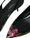 Dolce & Gabbana Black Floral Leather Heels Slingback Shoes