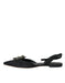 Dolce & Gabbana Black Leather Crystal Slingback Sandals Shoes