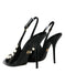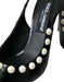 Dolce & Gabbana Black Leather Faux Pearl Heel Slingback Shoes
