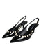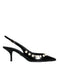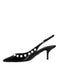 Dolce & Gabbana Black Leather Faux Pearl Heel Slingback Shoes