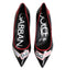 Dolce & Gabbana Black Leather Logo Print Heels Pumps Shoes