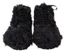 Step into luxury and style with these exquisite ankle boots by Dolce & Gabbana. Crafted with the finest leather and Mongolia shearling, these boots are a testament to high craftsmanship and exclusive design. The striking contrast of black and blue hues, coupled with the convenience of lace-up and zipper closure, make these shoes a versatile and fashionable choice for any discerning gentleman. The robust rubber sole ensures durability while flaunting the iconic logo details. Made in Italy, these boots are not just a statement piece but an embodiment of opulence and comfort.