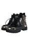 Dolce & Gabbana Black Leather Studs Embellished Combat Boots Shoes