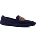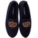 Dolce & Gabbana dark blue suede calfskin loafers with jeweled and lurex crown decoration, matelassé interior with printed logo