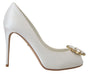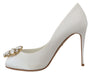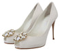Dolce & Gabbana Crystal-Embellished White Peep Toe Heels