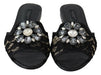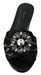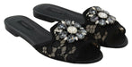 Dolce & Gabbana Elegant Black Lace Mules with Jewel Flower Detail
