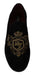 Dolce & Gabbana Elegant Black Loafers with Gold Crown Embroidery