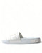 Step into luxury with these exquisite white logo embossed slides from the renowned house of Dolce & Gabbana. Impeccably crafted in Italy, these slides are perfect for those who seek elegance even in their casual wear. The wide strap design and molded footbed provide both supreme comfort and style, making these flats a summer essential for any fashion-forward wardrobe.