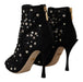 Step into luxury with these exquisite Dolce & Gabbana short boots, crafted to perfection with sparkling crystal embellishment. Meticulously designed for the fashion-conscious individual, they exude sophistication and high-end quality, essential for any elegant wardrobe. Constructed with a blend of durable nylon and supple leather, along with touches of viscose and polyester, these boots promise both unparalleled comfort and style. Proudly made in Italy, they feature the esteemed brand’s signature logo detailing. Elevate your shoe collection with this black, versatile pair that complements any ensemble.