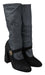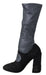 Step into luxury with these opulent Dolce & Gabbana booties, new with tags and guaranteed to make a statement. Designed to stretch gracefully over the calf, these Mary Janes feature a dazzling black and gray color scheme adorned with shimmering crystals. Crafted in Italy, they ensure both comfort with their leather sole and high-street style that elevates any ensemble.