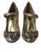 Dolce & Gabbana Gold Jacquard Crystal Mary Janes Pumps Shoes