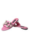 Dolce & Gabbana Pink Embellished Leather Flats Sandals Shoes