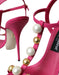 Dolce & Gabbana Pink Embellished Leather Sandals Heels Shoes