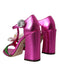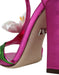 Dolce & Gabbana Pink Leather Crystals Floral Sandals Shoes