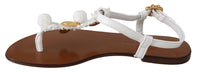 Step into sublime style with these exquisite Dolce & Gabbana ankle strap flats. Perfectly balancing elegance and playfulness, these flats are sure to turn heads with their charming pom pom details and luxurious gold metal accents, set against a pristine white backdrop. Skillfully crafted in Italy, these shoes represent the pinnacle of fashion artisanship, ensuring utmost comfort and durability with a leather inner and outer sole. Adorn your feet with these dazzling beauties for any upscale event or a chic day out.