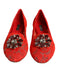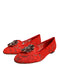 Dolce & Gabbana Red Lace Crystal Ballet Flats Loafers Shoes