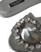 Dolce & Gabbana Silver Crystal Leather Flats Sandals Shoes