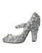 Dolce & Gabbana Silver Floral Crystal Mary Jane Pumps Shoes