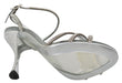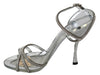 Dolce & Gabbana Silver Leather Ankle Strap Sandals with Crystals