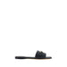 Calfskin Leah Sandals by Ferragamo, featuring an open front square toe, a logo-embossed insole, and the brand’s iconic three-dimensional Gancini logo plaque applied to the front.
