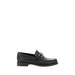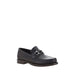 Calfskin Ornament Loafers by Ferragamo, slightly elongated round toe, leather block heel, three-dimensional iconic Gancini logo plaque detail on front, press-studded logo insole.