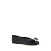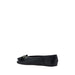 Calfskin Vara Ballerinas by Ferragamo, round toe, flat sole, bow with metal plaque applique on front, contrasting logo insole.