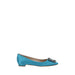 Silk Satin Hangisi Ballerinas by Manolo Blahnik, almond toe, slight leather block heel, embossed Swarovski jewel detail applied on front, velvet effect design, logo insole.