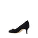 Silk Satin Hangisi Pumps by Manolo Blahnik, almond toe, iconic Swarovski crystal buckle appliqué on front, leather stiletto heel, logo-embossed insole.