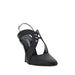 Leather Jijara Pumps by Manolo Blahnik, patent leather design, almond toe, leather stiletto heel, adjustable slingbck with strap, leather detailing on upper, contrasting logo insole.
